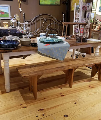 My husband and I stopped at the Artful Eye to check out antiques. To our surprise a window sign said “hand made farm tables” and I needed to inquire right away. Well, that was the beginning of not only getting my table, but being a part of every step of its construction through Randall. We got pictures of everything from the board selection to it’s completion. Randall really made my dream table come to life. We also got one of his beautiful benches to complete our dining set. This was one of the best customer experiences I have ever had. If you want quality and perfection I highly recommend contacting Randall.