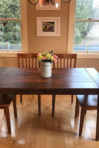 We just wanted to thank you again for delivering the most beautiful walnut dining table to our ski chalet this morning. It’s a work of art, made with such care and attention to detail. You made it to our exact specifications. It was a pleasure to work with you, as you were always available to answer our questions over text, or email or by phone. You were incredibly responsive. We made a few visits to the shop and you never minded when we wanted to test out stain colors when you were working on other projects for other clients.
