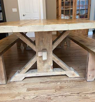 I found Randall Online. I had always wanted a farm style kitchen table. He was very easy to work with and updated me on the progress of my table with pictures from beginning to end. He worked very hard to give me what I had asked for. I ended up with a beautiful table and a bench to match. I absolutely love them.