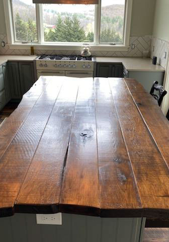 We wanted to let you know that this island top has exceeded our expectations. When we first started planning the kitchen, I told my husband what I had envisioned for our island and he found you to do the custom work. What a great find that was!!!! You nailed what I envisioned and then some. The piece is unique, one-of-a-kind and definitely a statement piece that we are so excited to have family and friends gather around in the near future. The piece is warm and looks like it already has stories to tell because it looks like it has age and history. This exactly what I wanted. The custom work is so detailed and thoughtful. You truly took what we said to heart, combined with your experience and creativity and made something utterly beautiful that I know we will cherish as long as we live in that house. We so excited and absolutely love the piece! Thank you so very much for doing this for us!!!!